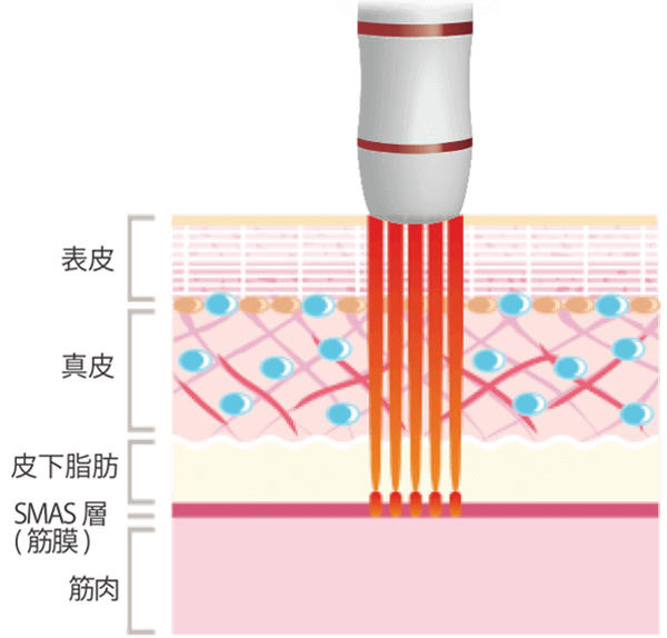 SMAS層(筋膜層)をターゲットに高エネルギーを照射することで、